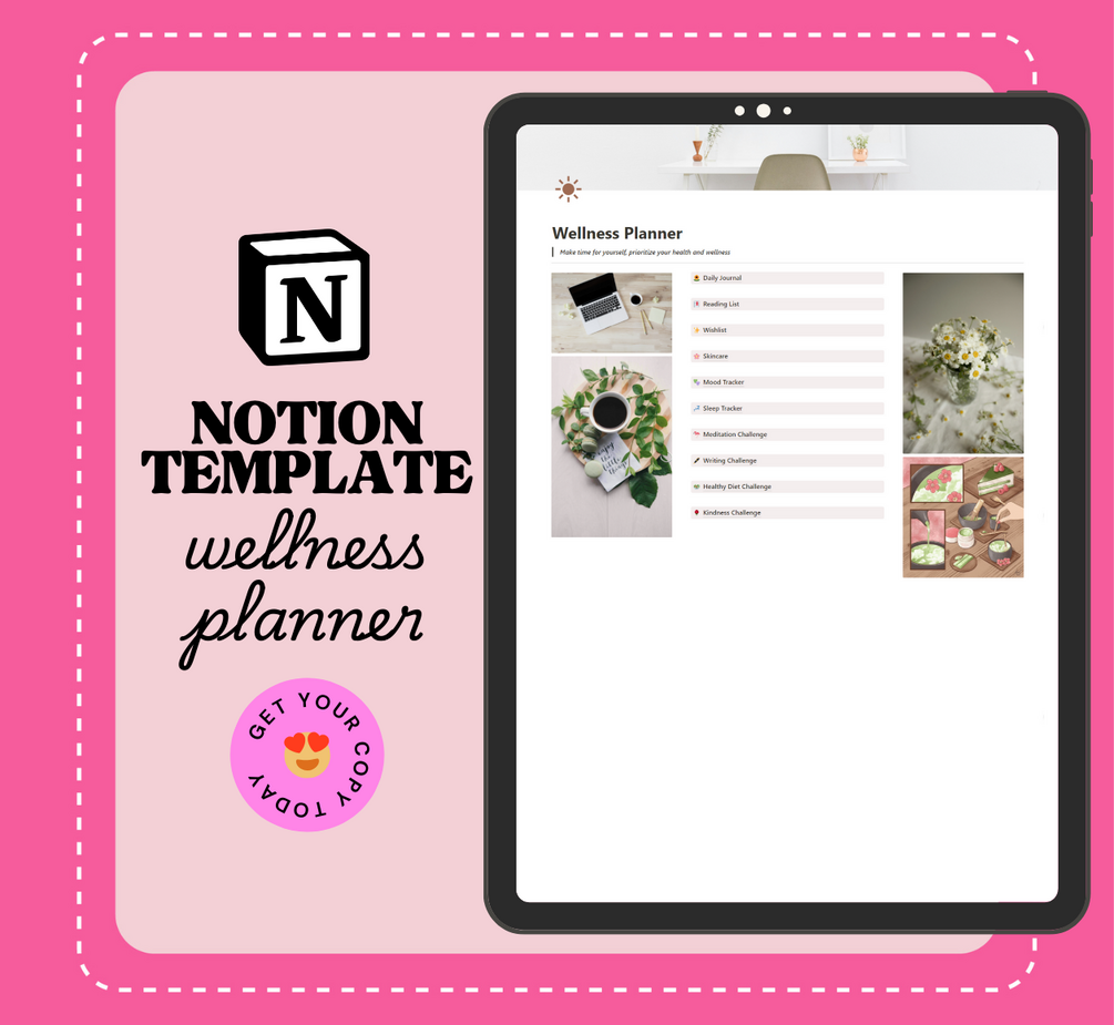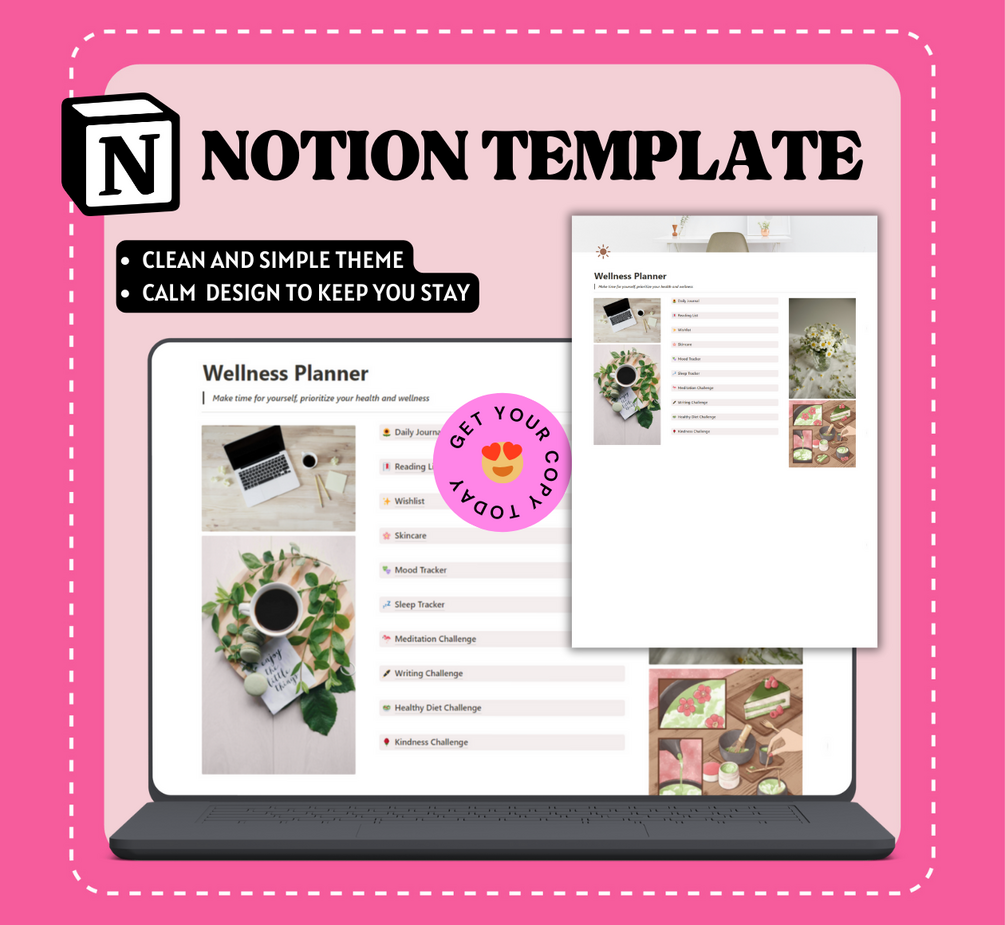 Wellness Planner Notion Template, Wellness Notion Dashboard