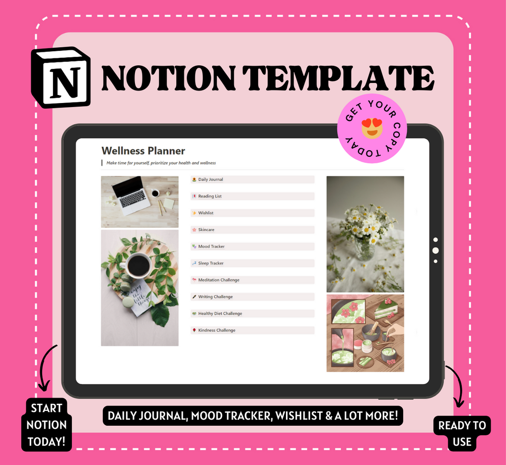 🌻In addition to physical health, the Wellness Notion Template also covers mental and emotional well-being. Take advantage of the mood tracker to monitor your emotional state and identify patterns. Use the journaling feature to reflect on your thoughts and feelings, fostering self-awareness and pers0nal growth.