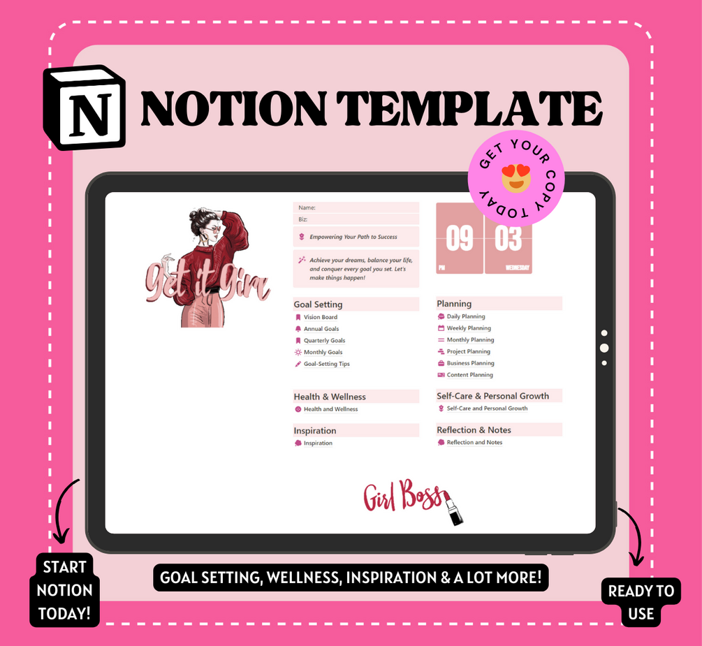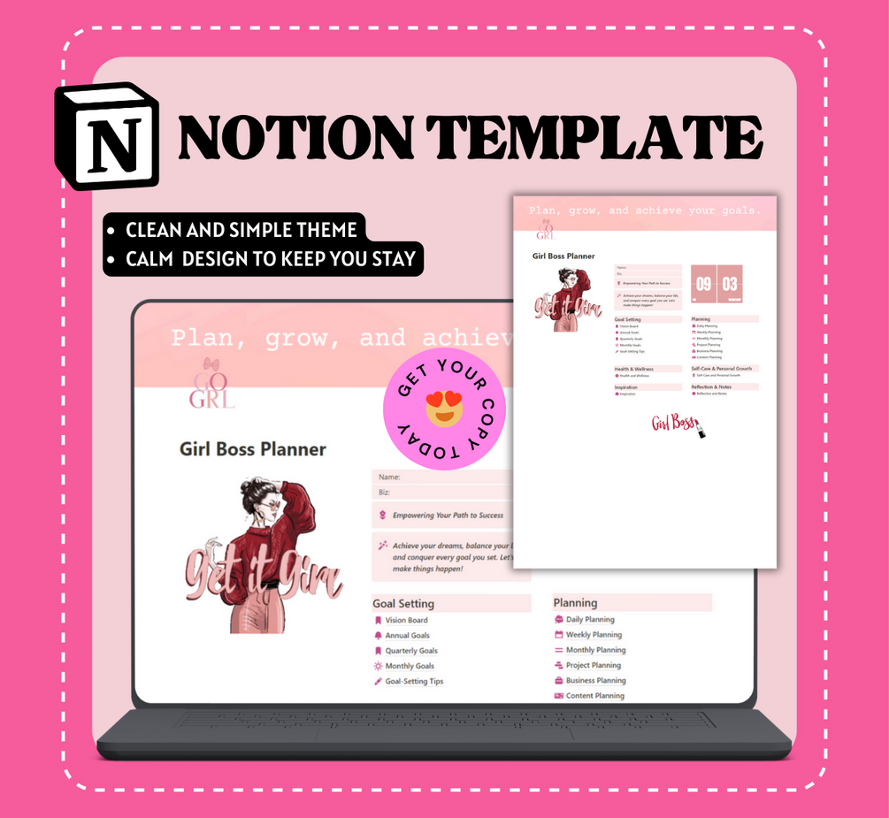 ⭐Girl Boss Planner Notion Template, Ultimate Digital Planning Tool⭐